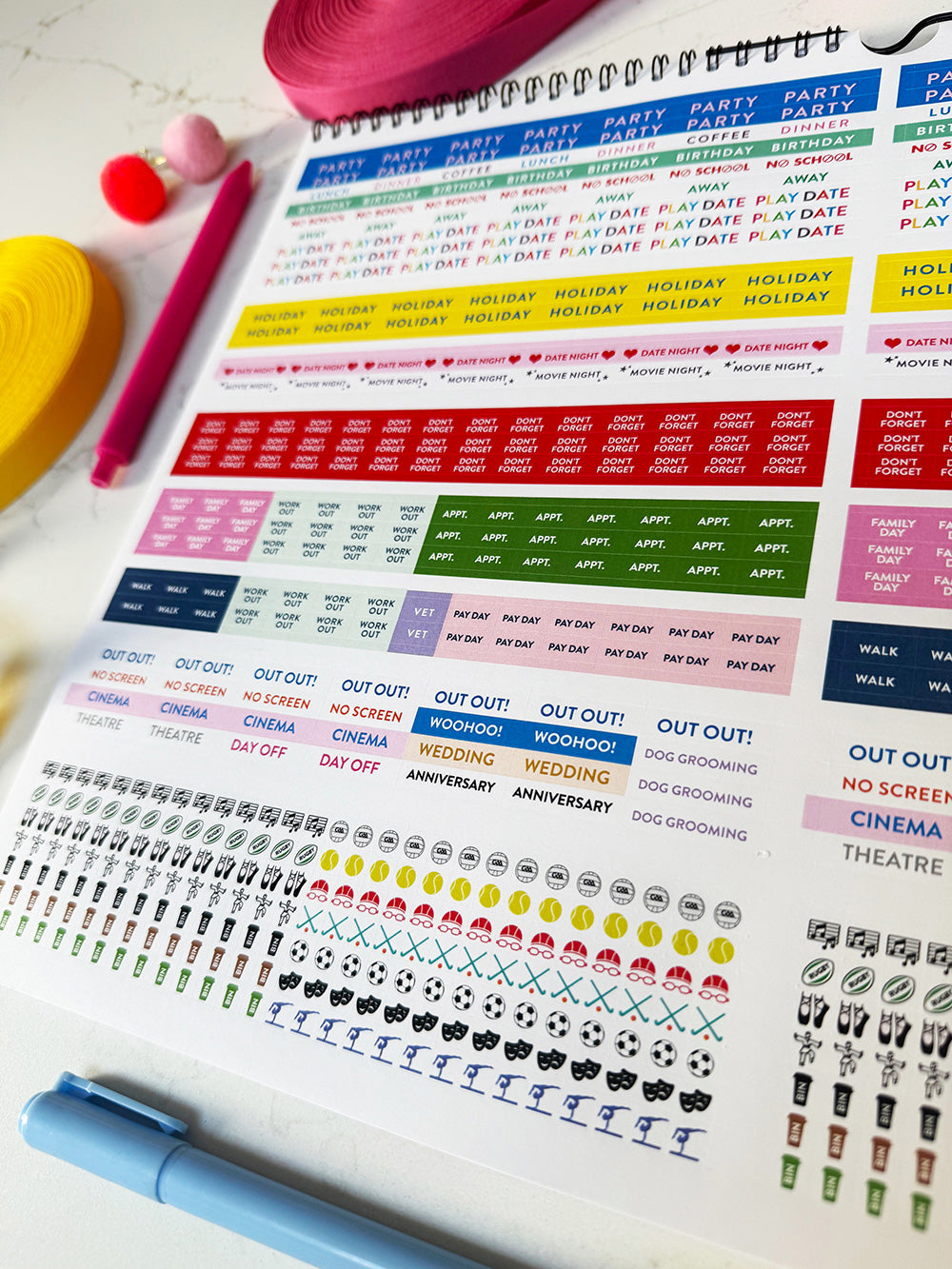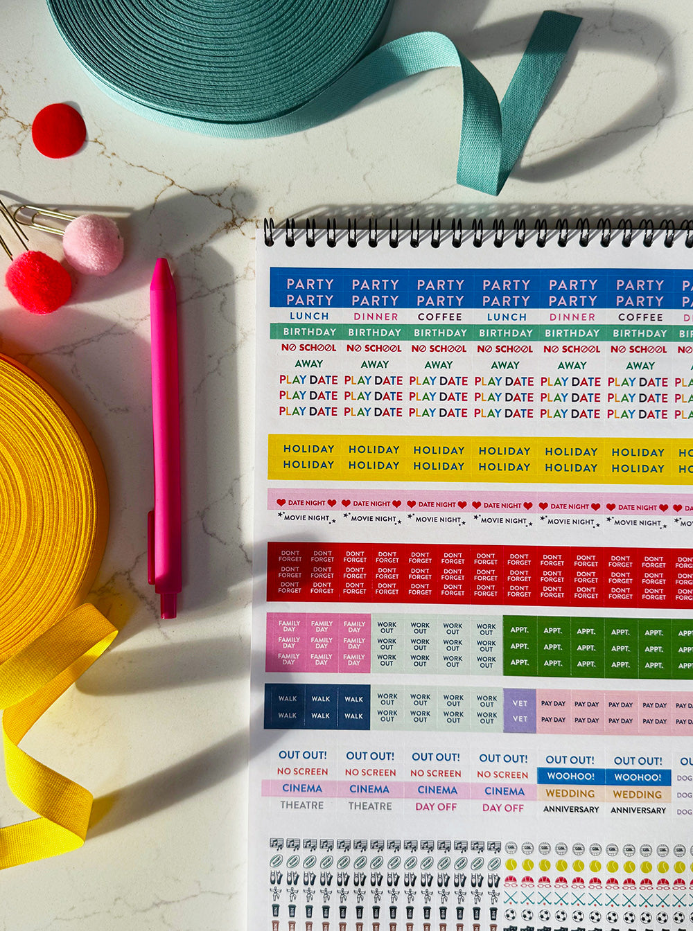 You'll find stickers for kids activities, like TENNIS, SWIMMING, DRAMA and GYMNASTICS, special events like WEDDINGS, ANNIVERSARY, helpful reminders such as NO SCREEN and WORK OUT, and if you have a pooch, even a DOG GROOMING reminders So if, like us, you were cajoled in to getting a four legged buddy during the Pandemic you can remind yourself when Fido's next hurrr do is! Get your mitts on one before they sell out. Which they do every year... Honestly, you won't regret it. Don't be the rueful souls, who email me in April or June wondering if there is even just one left (yep, this happens every year!) Don't let that be you! It almost deserves a Public Health Announcement! so, Run. Don't Walk, peeps! Happy organising!