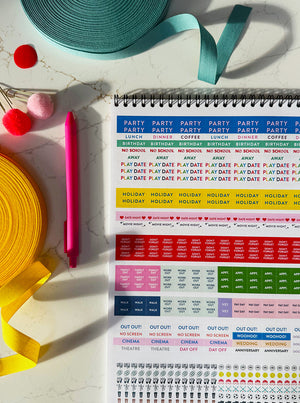 Included in your forget-me-not family calendar, are over 850 stickers. For example, if you're just terrible at getting it together to go out with your partner for a date night (like many of us) stick a date night sticker on your month, and, bam! hit up the cinema, go for an Early Bird or just take a walk without the kids. Ok - this planner isn't going to sort out your babysitter for you, but if it's on the wall, it's a start!