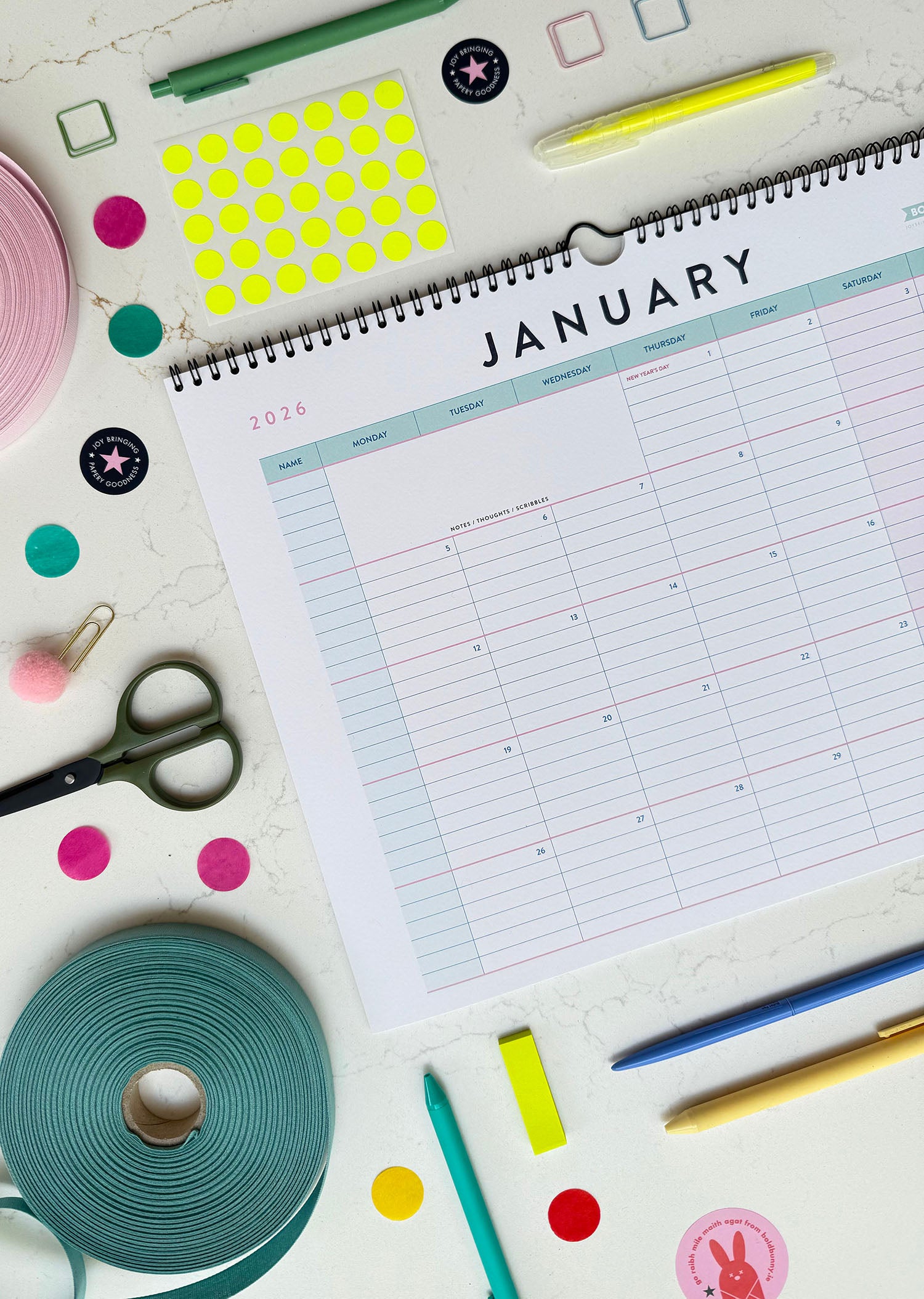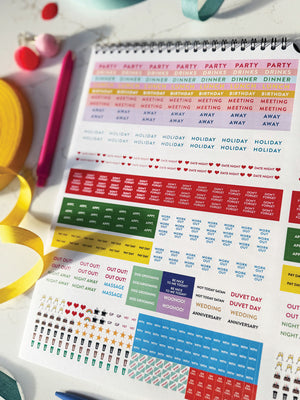 Included are over 850 stickers. For example, if you're just terrible at getting it together to go out with your partner for a date night (like many of us) stick a date night sticker on your month, and, bam! hit up the cinema, go for an Early Bird or just go for some drinks. Ok - this planner isn't gonna sort out your relationship for you, but if it's on the wall, it's a start! yes?